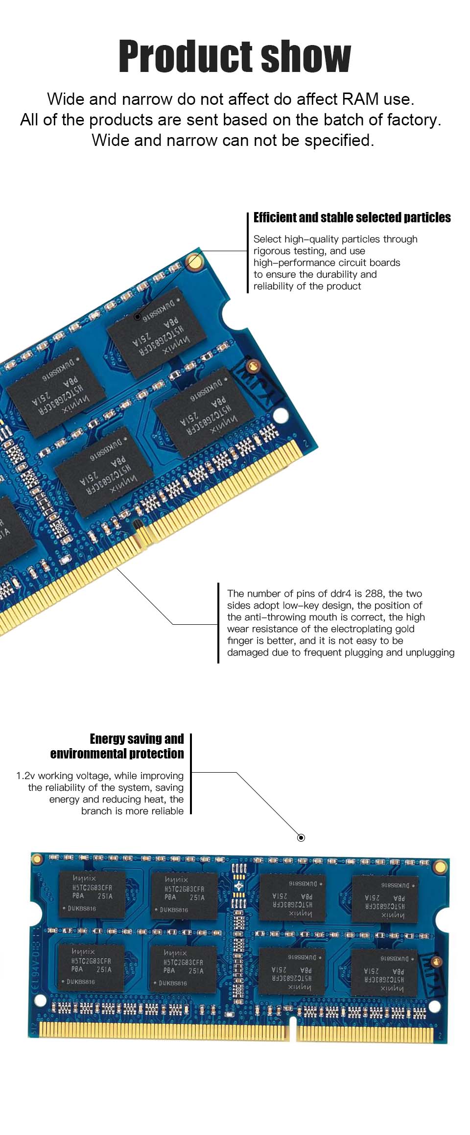 Ширина не влияет на использование оперативной памяти. Все продукты отправляются в соответствии с партией завода, и ширина не может быть указана.