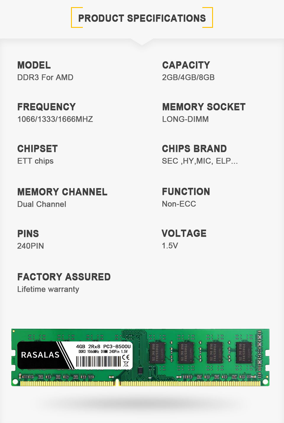 Оперативная память Rasalas DDR3 8G 4G для настольного компьютера AMD 8500 МГц 10600 МГц DIMM 240pin 1,5 в, оперативная память для ПК, оперативная память для AMD