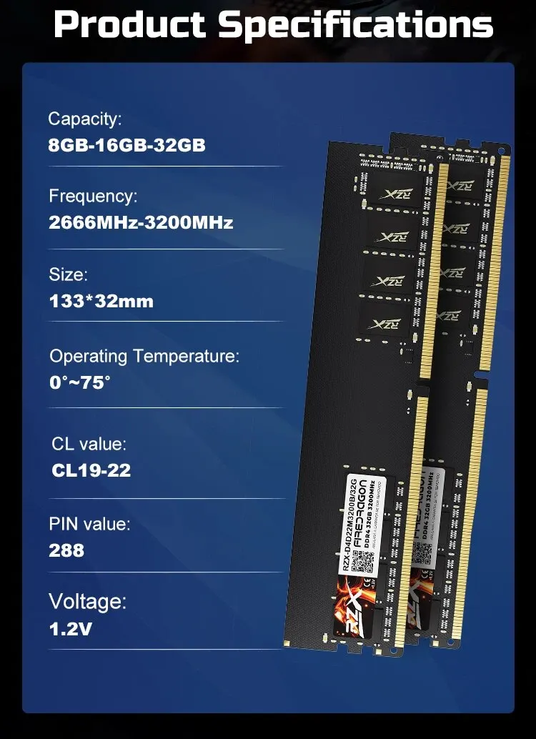 Оперативная память RZX DDR4, 8/16/32 Гб, 2666/3200 МГц