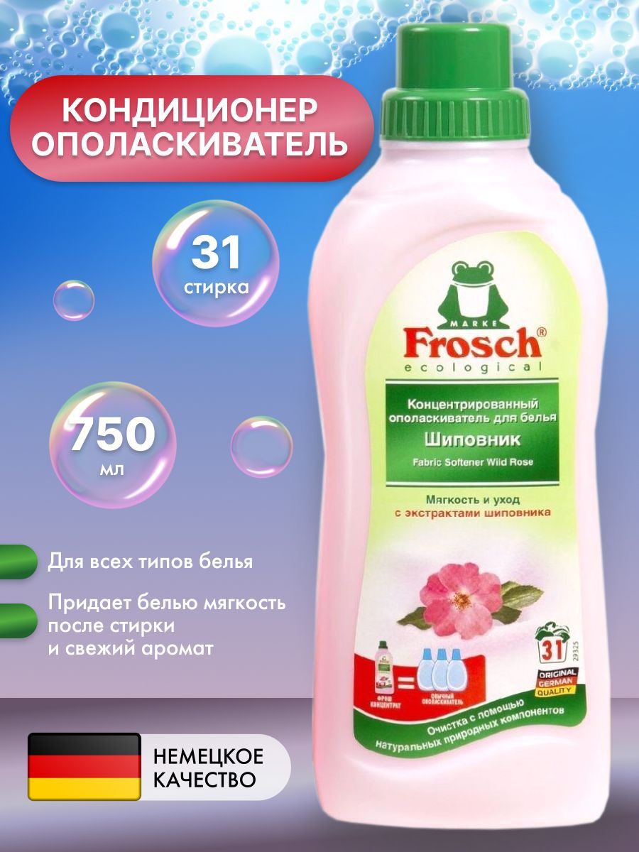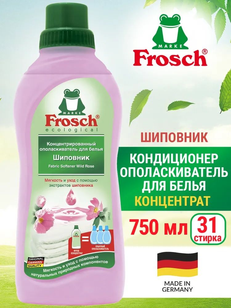 Ополаскиватель для белья FROSCH "Шиповник" концентрированный, 750мл, производство - Германия, кондиционер Фрош для всех типов ткани