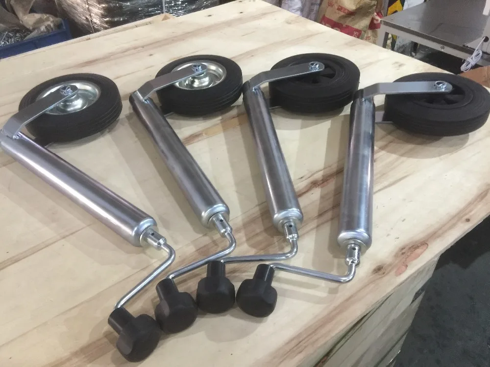 Это стандартное опрное колесо прицепа, подойдет для замены старого. Главное убедитесь, что диаметр трубы вашего старого колеса 48-49мм.