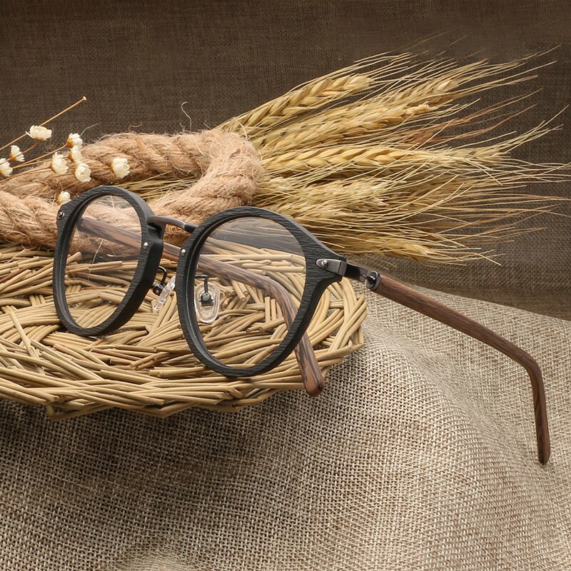 Оправа для очков HDCRAFTER Мужская и женская, круглая, под дерево, с прозрачными линзами