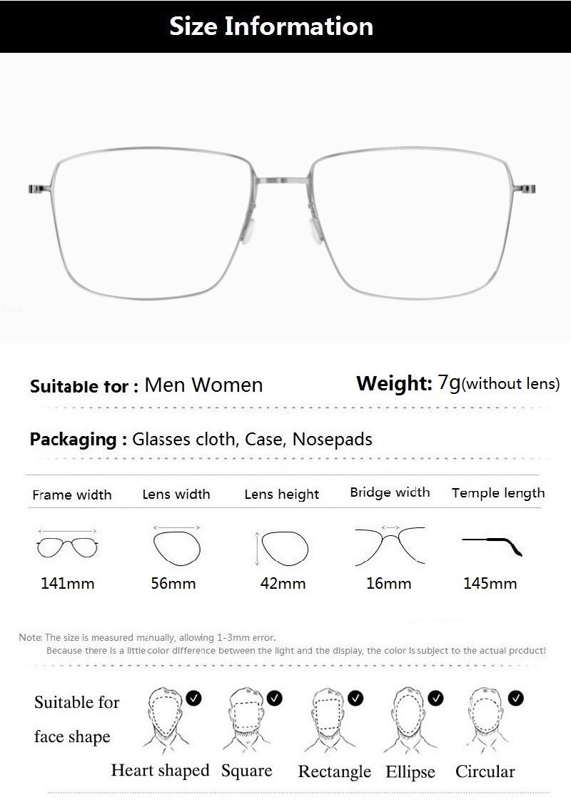 Packing: with glasses box, glasses cloth, nose pads