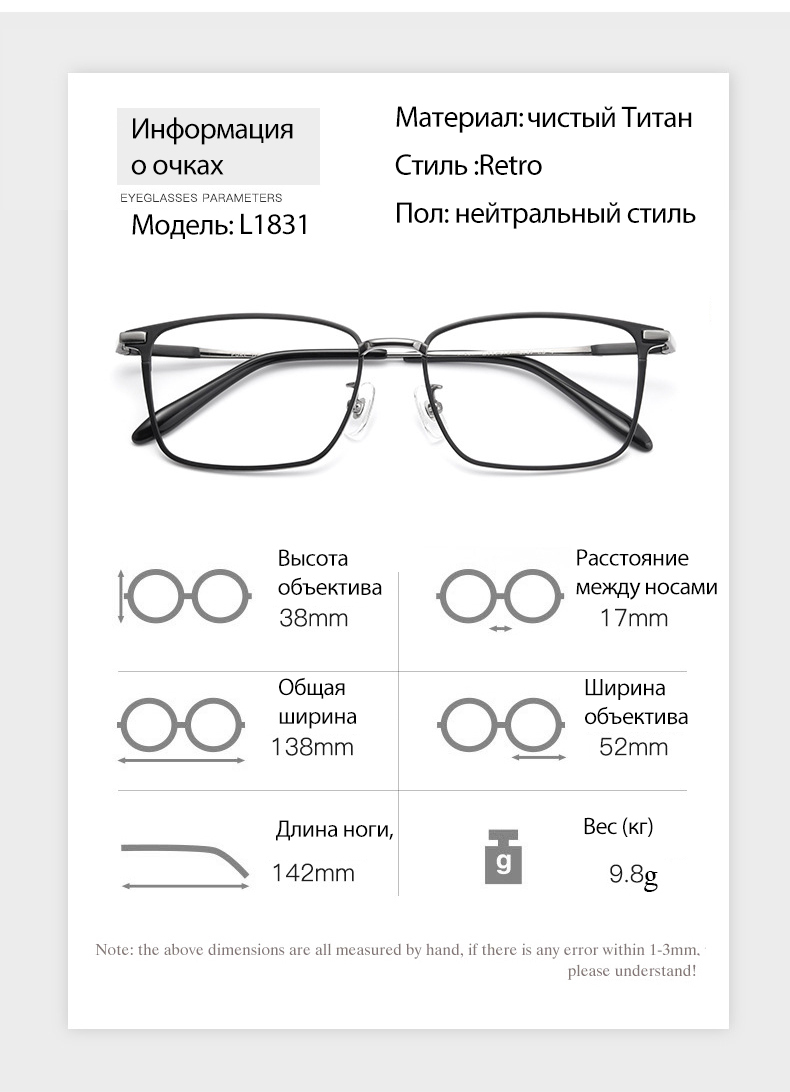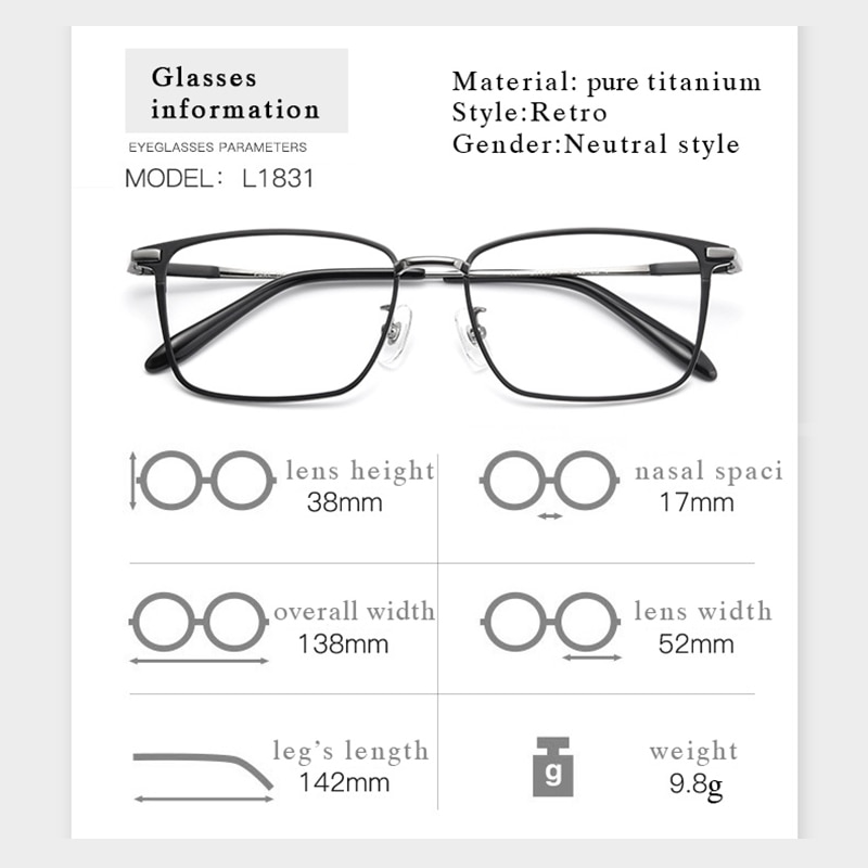 Model Number L1831 Pure Titanium Glasses Frame