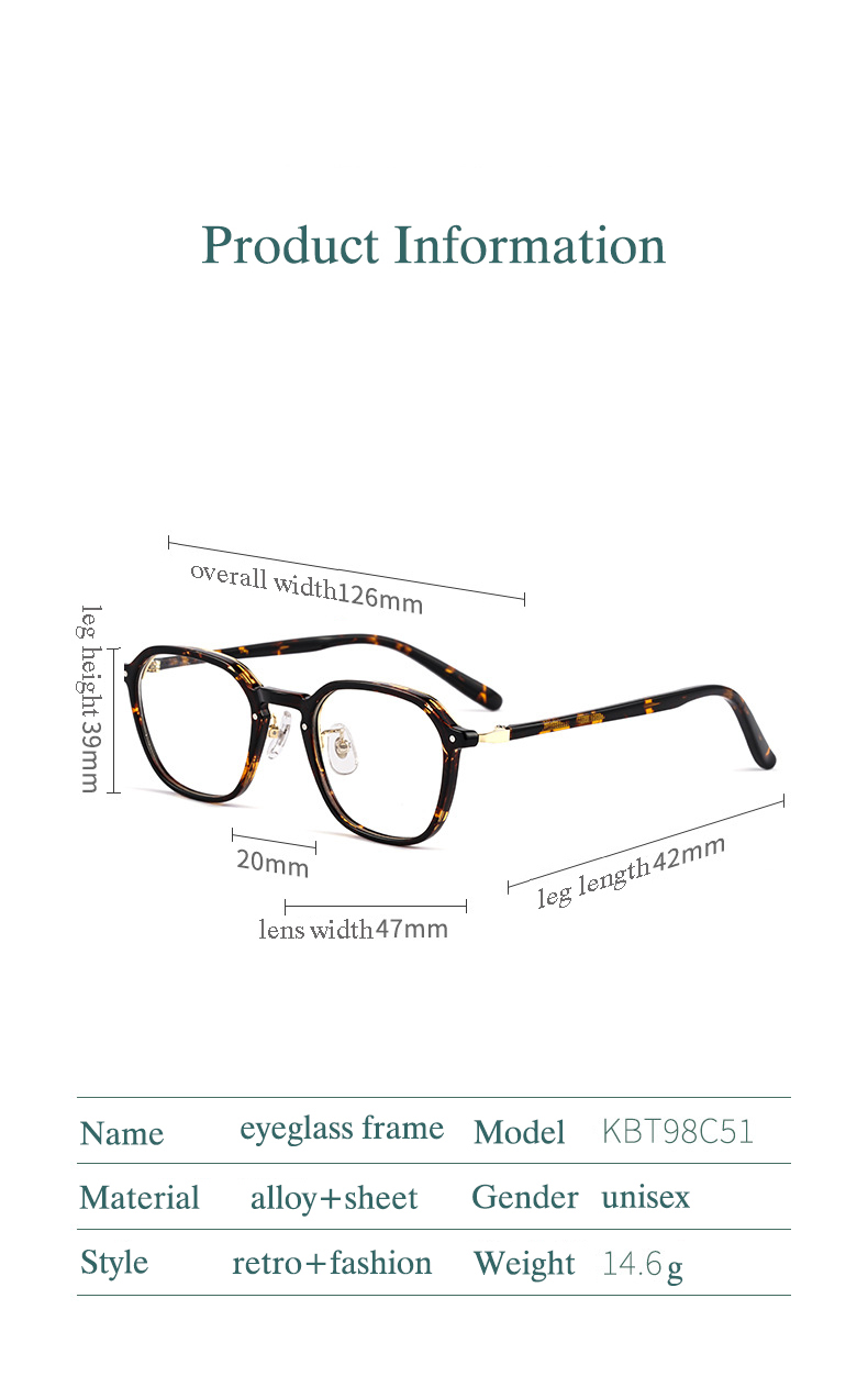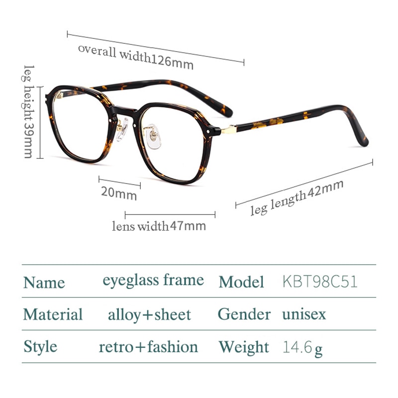 Model Number KBT98C51 Glasses Frame