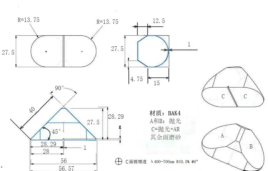 Оптическая Призма Paul для телескопа BAK4, стеклянная треугольная прямоугольная Lsosceles Porro Prisms, под заказ