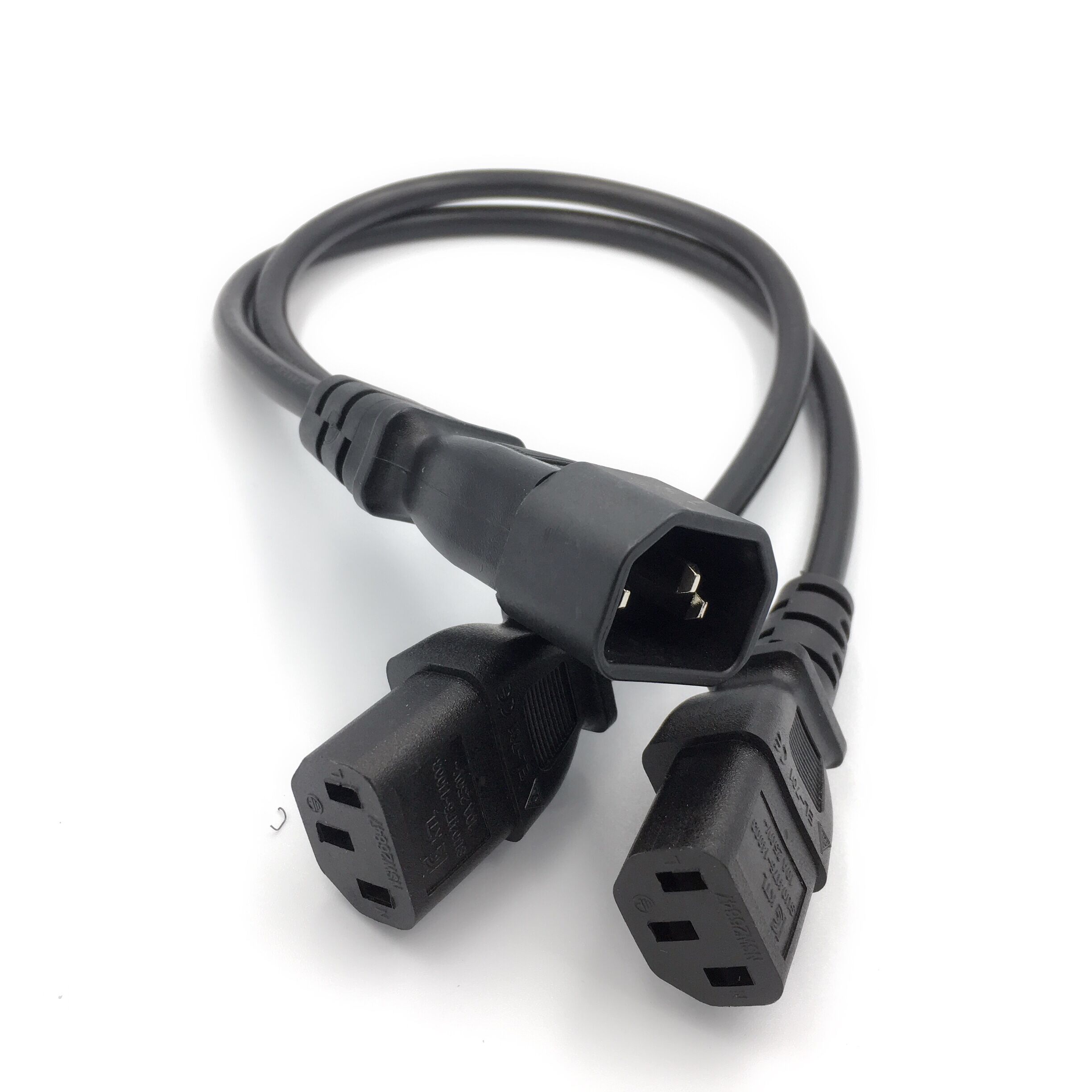 Single C14 to Dual 5-13R Short Power Y Type Splitter Adapter Cable Cord