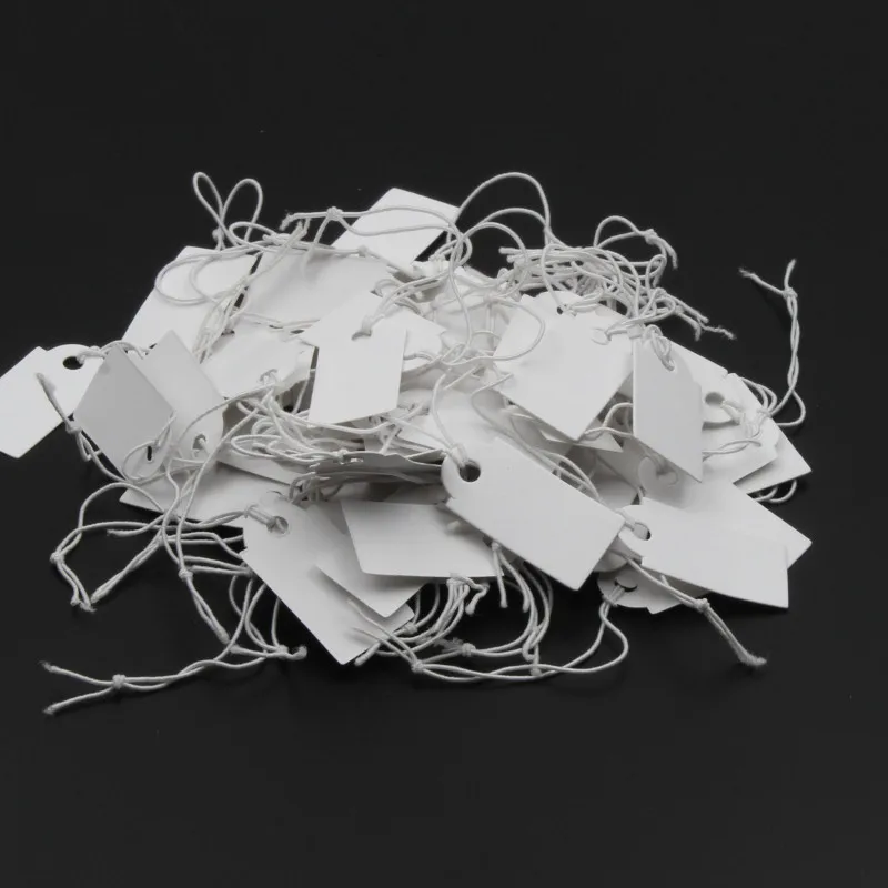 Оптовая продажа, 100 шт./лот, трендовая прямоугольная бумажная ценовая бирка, Белая пустая струна, цена для ювелирных изделий, рекламная бирка для продажи