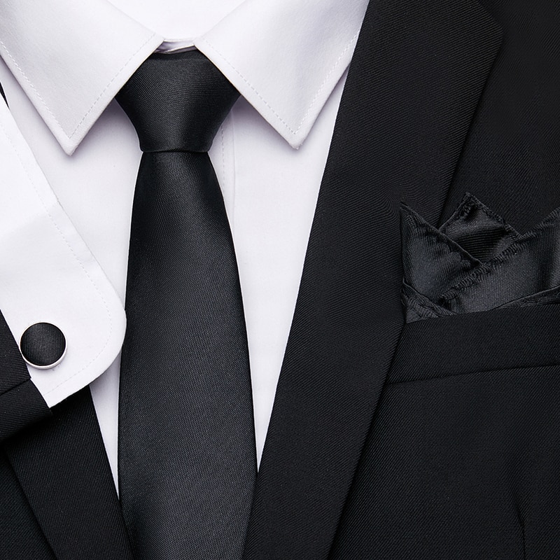 Оптовая продажа 2023 новый стиль Свадебный подарок галстук карманные квадраты набор галстук Однотонный черный мужской костюм аксессуары Подходит для делового рабочего места
