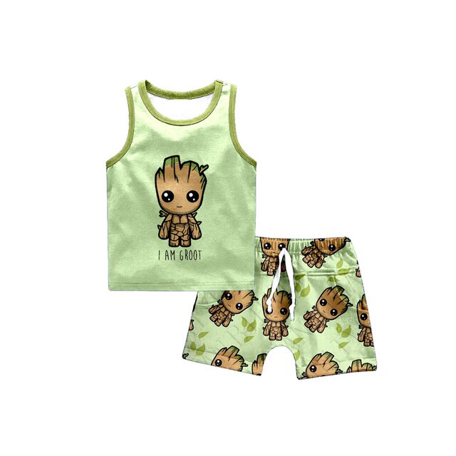 Оптовая продажа, Детская школьная одежда, Летний жилет, футболка, Мультяшные шорты, комплект из 2 предметов для маленьких мальчиков