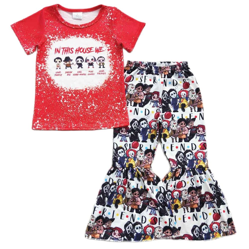 Оптовая продажа, костюм на Хэллоуин для маленьких девочек, рубашка с короткими рукавами и штаны-колокольчики для малышей, детский осенний ужасный костюм для младенцев