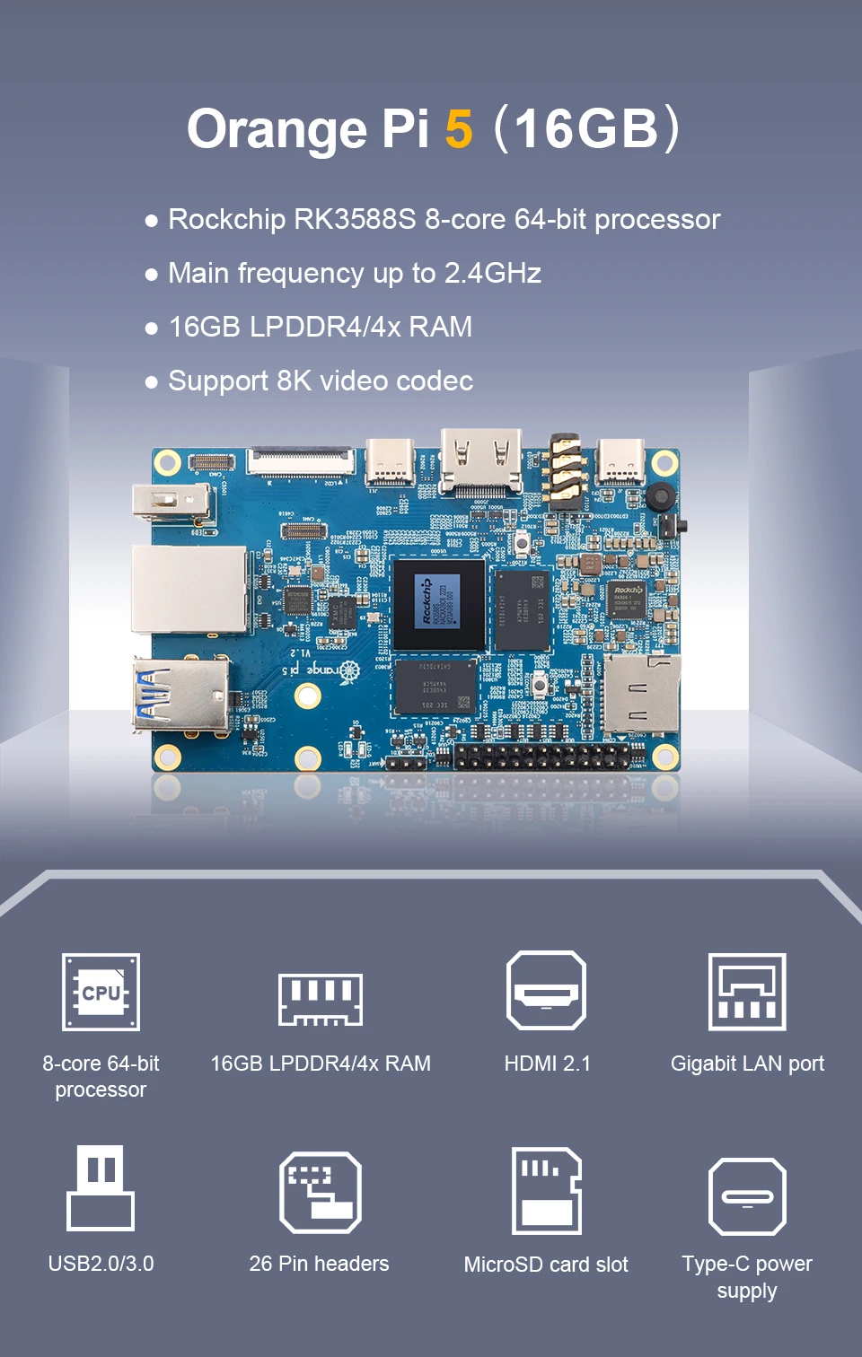 Оранжевый Pi 5 16 ГБ RK3588S
