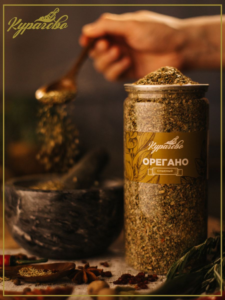 Описание: Сушеное орегано — это прекрасный способ добавить изысканный вкус и аромат своим блюдам. Мы продаем исключительно 100% натуральный продукт, полученный из высококачественной зелени, выращенной на полях с отличной экологией. Душица имеет множество полезных свойств для организма: она богата антиоксидантами, которые помогают бороться со свободными радикалами, а также содержит витамины и минералы, включая железо, кальций и магний. Трава идеально подходит для приготовления итальянских блюд, таких как пицца, лазанья и спагетти, хорошо гармонирует с мясом. Орегано также отлично сочетается с другими приправами, пряностями и специями (базиликом, перцами и тимьяном), что позволяет приготовить вкусные соусы и маринады. Душица пригодится для приверженцев вегетарианского, веганского и постного питания, подойдет тем, кто следит за фигурой и предпочитает здоровую еду. Удобная баночка весом в 300 грамм позволяет вам наслаждаться вкусом пряности в течение долгого времени, а также компактно хранить ее в кухонном шкафу. Это замечательный вариант для тех, кто любит экспериментировать с новыми рецептами и добавлять изюминку в свои шедевры. Выбирая бакалею Курагово, вы получаете натуральный продукт высокого качества, который не только обогатит вашу кулинарную коллекцию, но и сделает блюда еще более вкусными и полезными.
