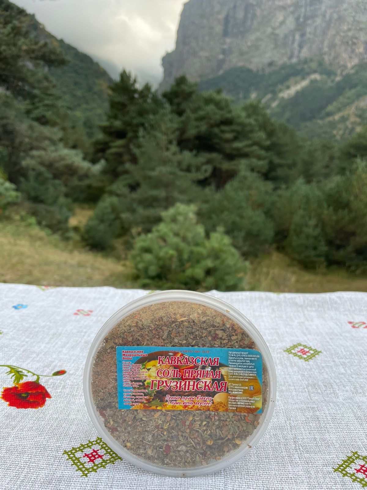 Описание: Текст при отключенной в браузере загрузке изображенийБольшая упаковка 300гр и потрясающий вкусПряная ореховая смесь – одна из авторских ароматных солей, произведённых на Северном Кавказе - город Пятигорск! В эту смесь входят такие кавказские специи и приправы как грецкий орех и кориандр, которые мы обжариваем на ореховых опилках. Благодаря этому специя приобретает интересный аромат и вкус. Также мы добавляем куркуму, зеленый свежий укроп и петрушку, чаман, уцхо сунели, немного соли. Соль нужна в качестве консерванта. Так как чеснок, входящий в состав - свежий.