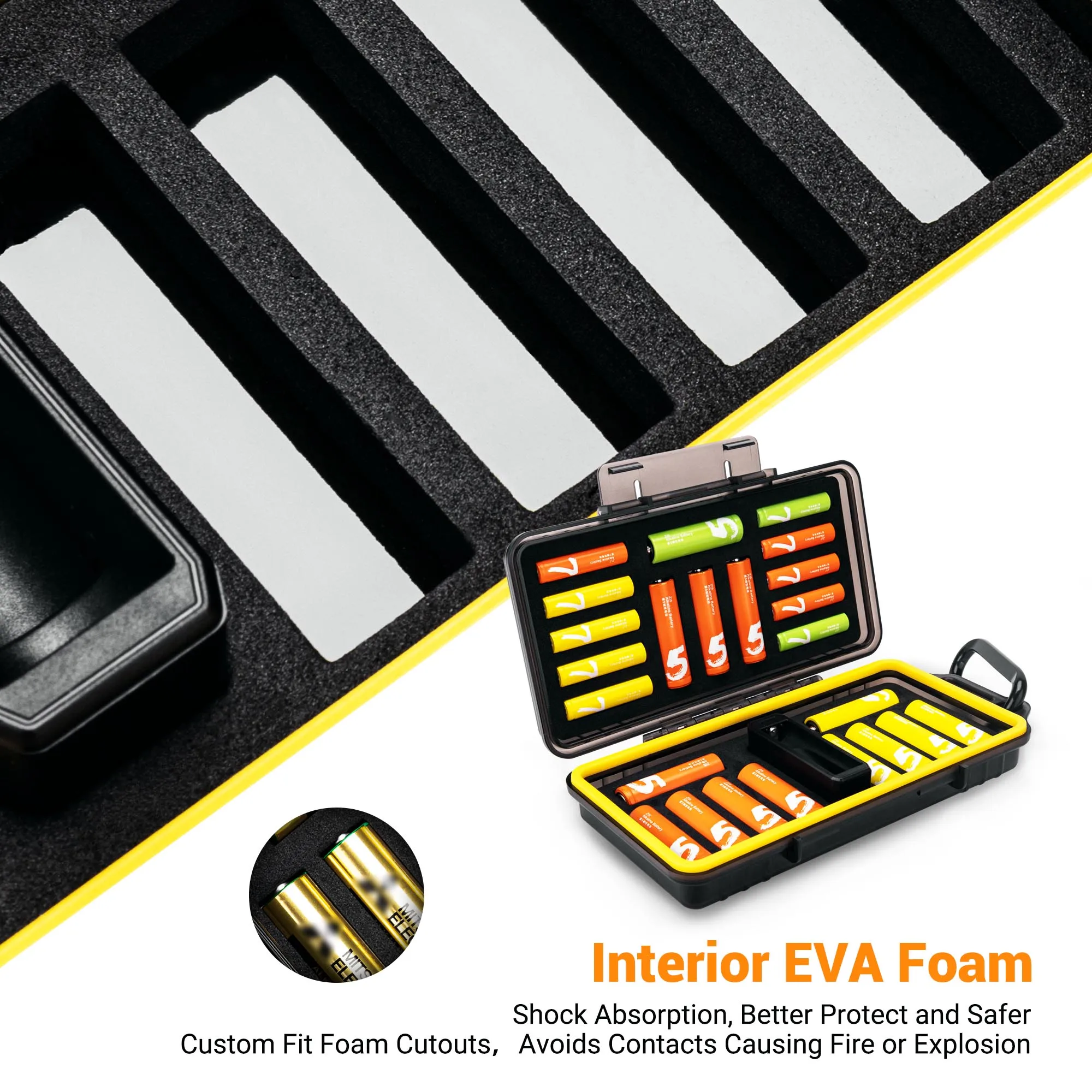 Органайзер для батарей AA/AAA, водонепроницаемый держатель для батарей 14 x AA и 10 x AA
