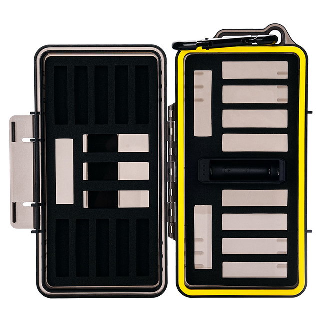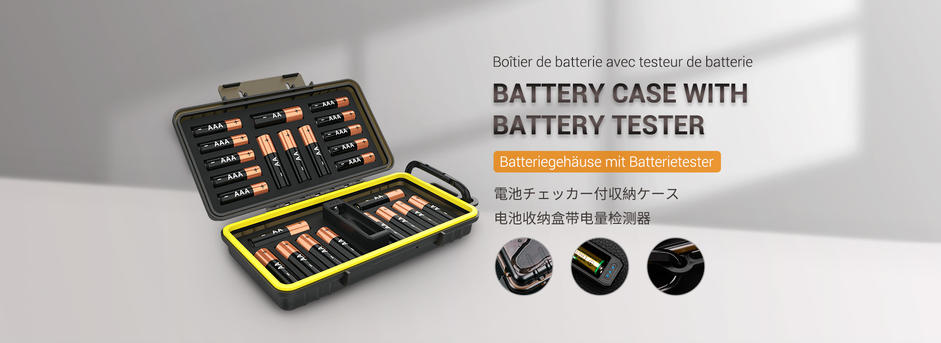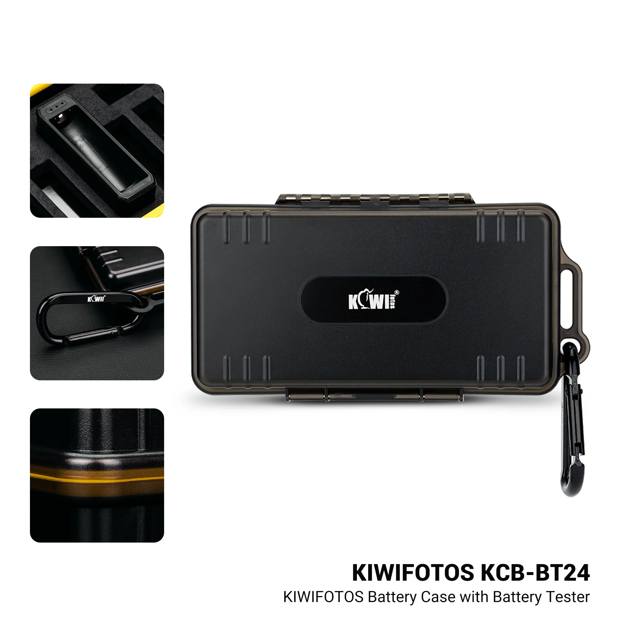 The KIWIFOTOS KCB-BT24 Battery Case with Battery Tester is designed for storing and carrying battery, as well as testing battery power. It can hold AA battery x 14 and AAA battery x 10 (Batteries Are Not Included),neatly hold the batteries snugly in place within the foam pre-cut slots and keeps the contact ends from contacting each other; great way to organize your batteries, easy for you to find whatever battery you looking for quickly. Made of high-quality and environment-friendly PC plastic material, this case is pressureproof, shockproof, sturdy and durable, and can effectively bear the weight of full battery. With a silicone O-ring seal inside, the case can effectively keep dust and water away. The custom fit interior EVA foam has the characteristic of shock absorption, which can greatly reduce shock and impact to better protect your batteries. Moreover, the ergonomic locking system can realize easily opening and closing. With free carabiner provided, easy to attach the battery case to backpack or hang it on tripod, ideal for the convenience of your outdoor activities. The last but not the least, each battery case comes with a small detachable battery tester, works for AA or AAA batteries, handy and easy to use.