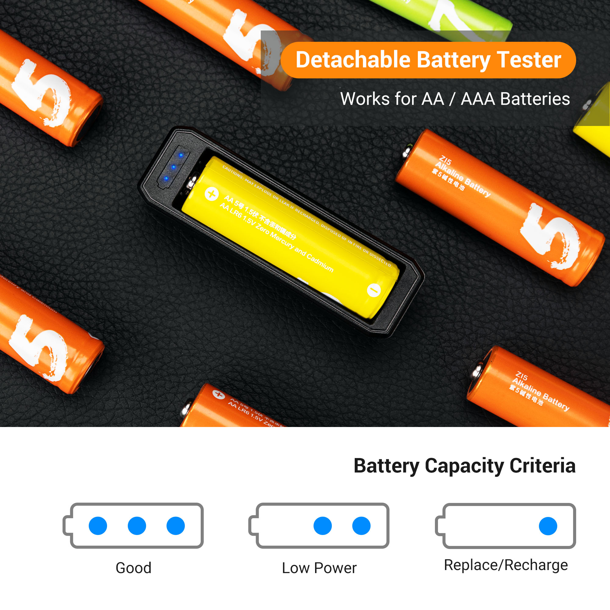 Includes Detachable Battery Tester: Works for AA / AAA batteries; handy and easy to see if batteries are still good.