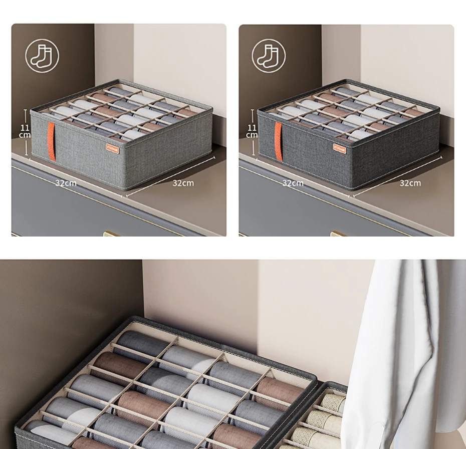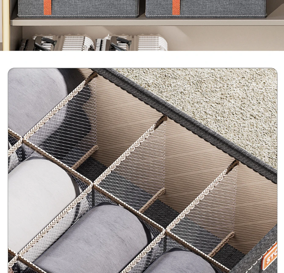 3. Наш набор разделителей ящиков-органайзеров для нижнего белья изготовлен из сетчатого тканого материала с тонкой обработкой, мягкими швами, прочностью и нелегкой деформацией. Его можно сложить для экономии места, когда он не используется.