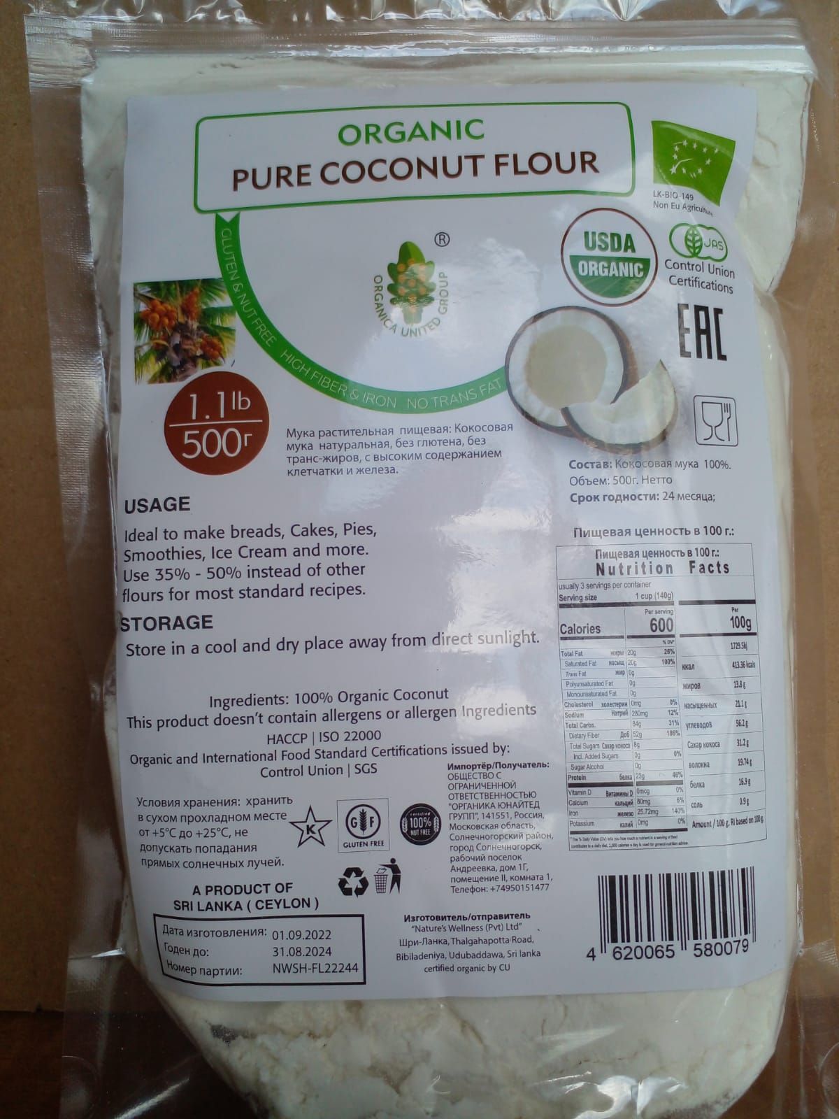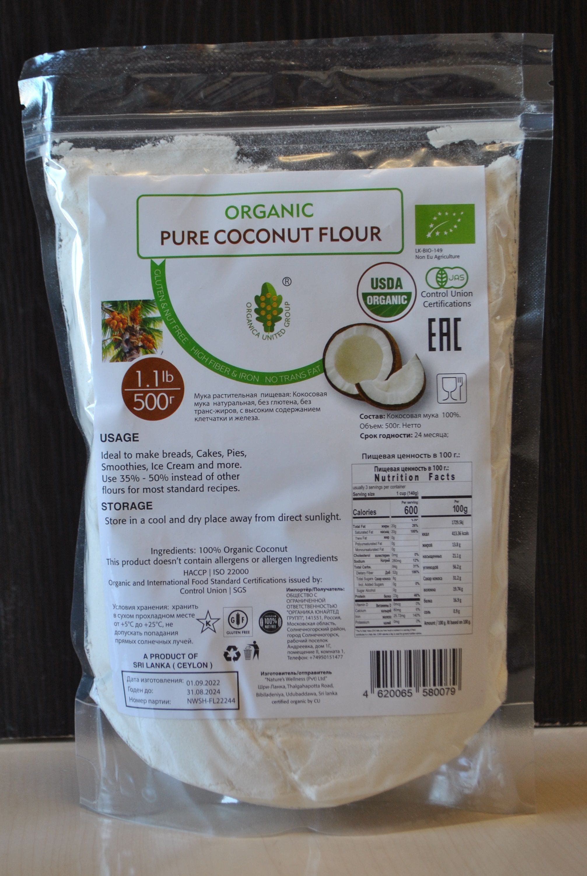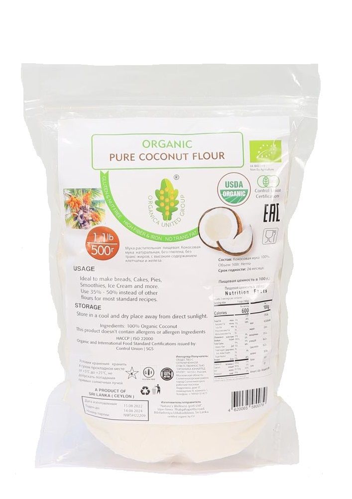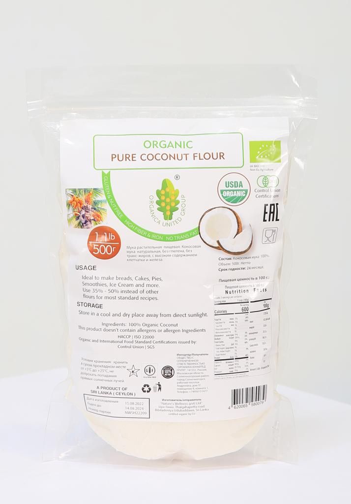 ORGANICA UNITED GROUP, КОКОСОВАЯ МУКА organic coconut flour . Пищевая 500г.