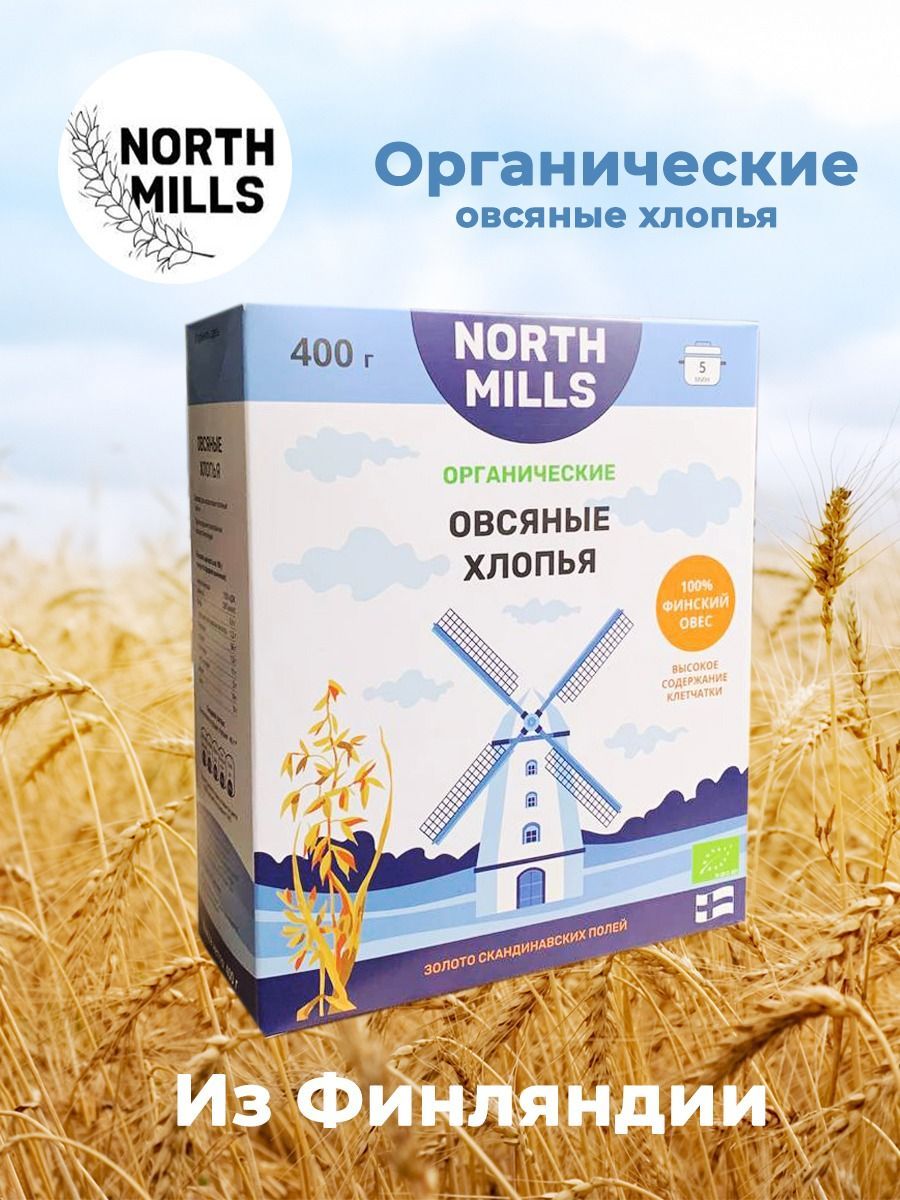 Органические Овсяные хлопья North Mills (5 мин), 400 г, Финляндия