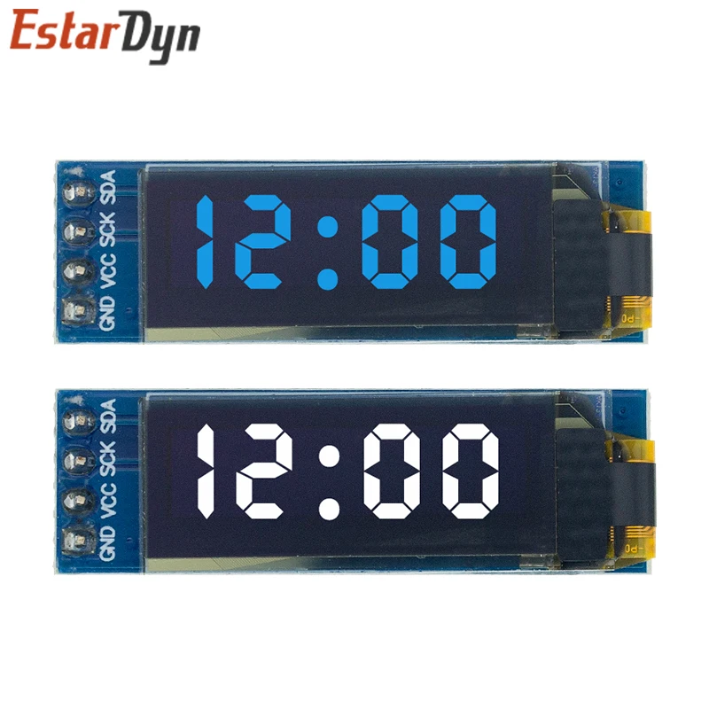 OLED-дисплей, подсветка не требуется, самоосвещение, производительность дисплея лучше, чем у традиционного ЖК-дисплея, а также более низкое потребление. ИС драйвера: SSD1306 Размер: 0,91 дюйма Разрешение OLED: 128x32 Интерфейс IIC Цвет дисплея: синий Pin Описание: GND: Заземление питания VCC: Питание + (3,3 ~ 5 В постоянного тока) SCL: линия часов SDA: Линия передачи данных
