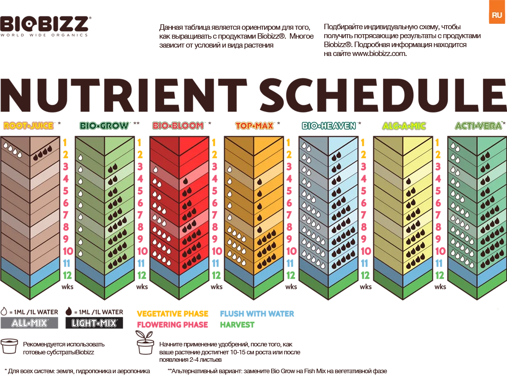 Biobizz bio bloom is an independent action fertilizer that can be used from flowering period to harvest. It can be added to the soil or to a groundless substrate, for example Biobizz Coco mix Consisting of coconut fibers. Manufacturer biobizz recommends taking an average of 2-4 mL per 1 liter of water, for a more accurate result, see the table on the back of the package.