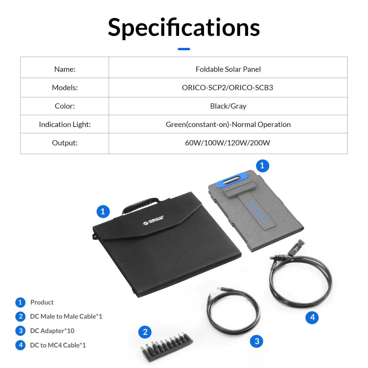 ORICO 200 Вт Складная Панель солнечных батарей Водонепроницаемый порт солнечная панель для электростанции открытый 18V11.1A Макс DC порт 60 Вт/100 Вт/200 Вт