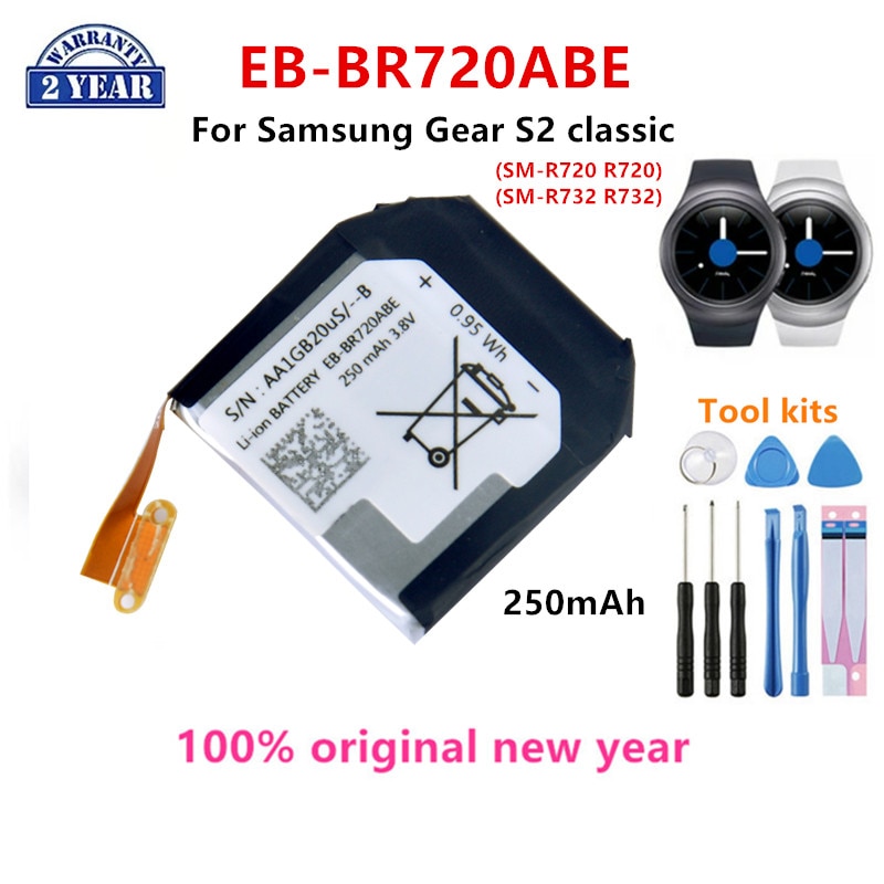 Оригинальная деталь 100% мАч, Новая батарея для Samsung Gear S2, Классическая деталь, R720, R732, аккумуляторы для умных часов + инструменты, 250