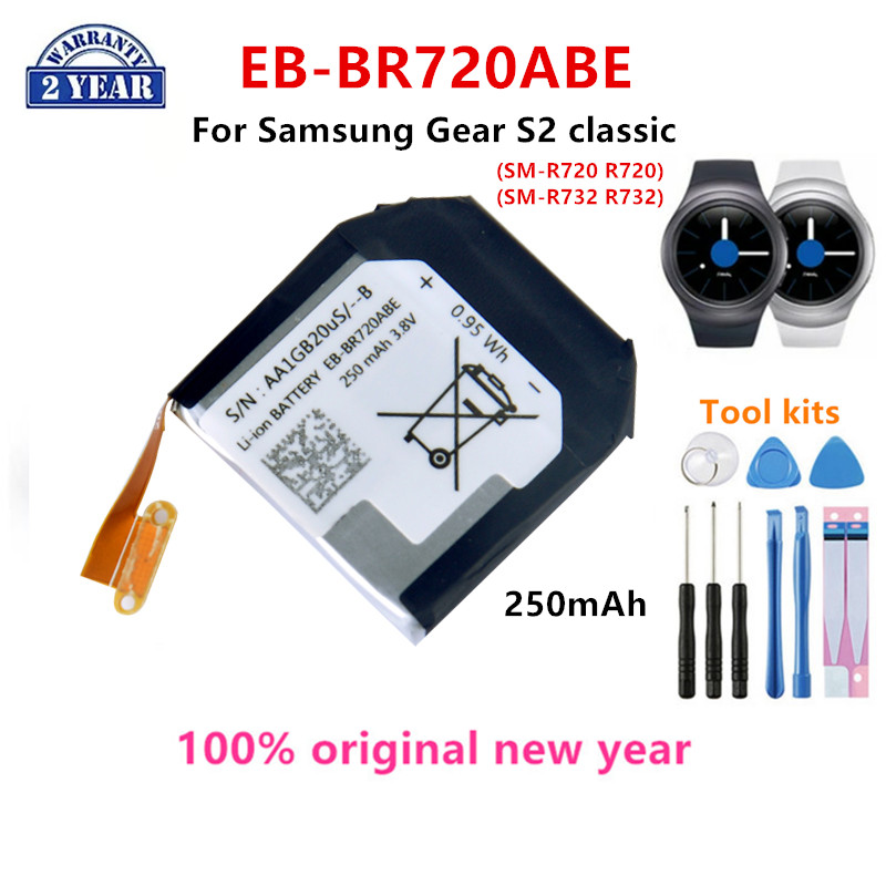 100% оригиналEB-BR720ABE250 мАч Новый Аккумулятор для Samsung Gear S2 Classic SM-R720 R720 R732 Батареи для умных часов + Инструменты