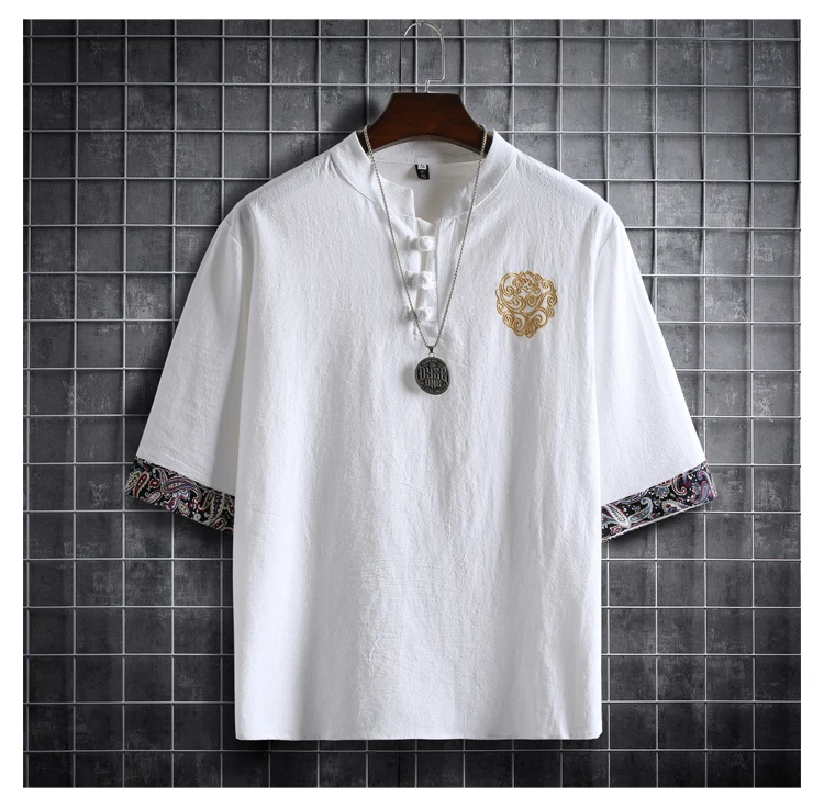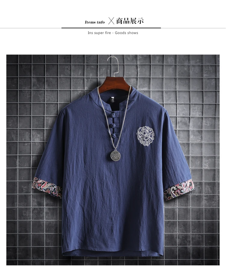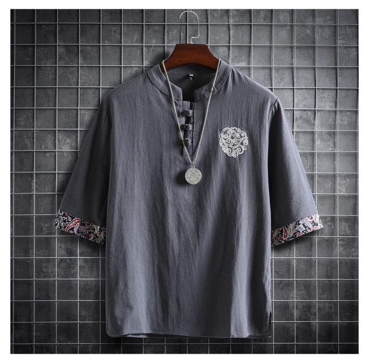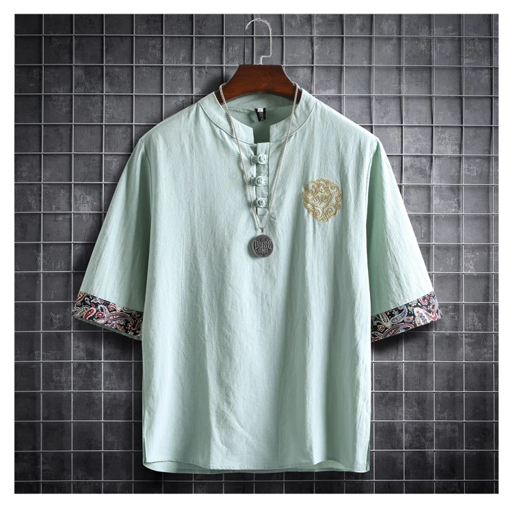 Оригинальная Мужская рубашка в традиционном китайском стиле, летняя блузка с коротким рукавом для мужчин, винтажная рубашка в стиле кунг-фу, мужская одежда