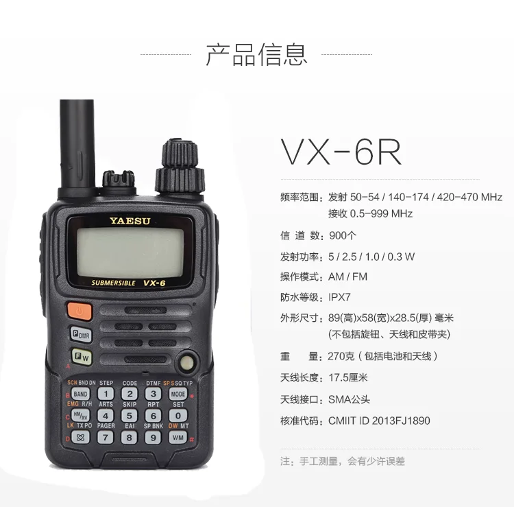 Оригинальная рация Yaesu 2023 VX6R 50-54 МГц 136-174 МГц 400-470 МГц, Полнодиапазонный приемник, водонепроницаемый, с шумоподавлением, Любительская рация FM