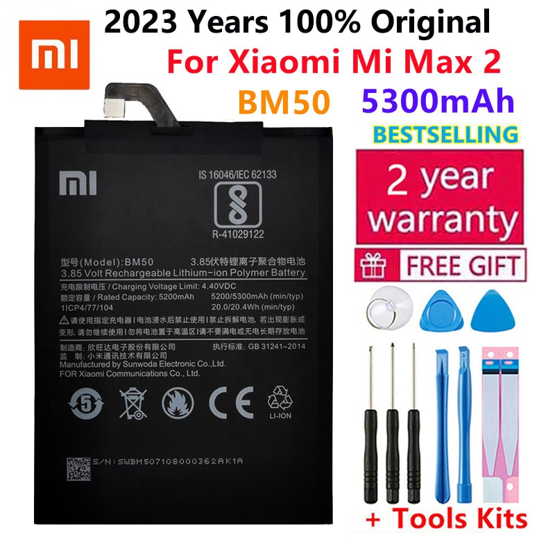 Оригинальная запасная батарея для Xiaomi Mi Max 2 Max2 BM50, натуральная батарея для телефона 5300 мАч + Бесплатные инструменты + наклейки