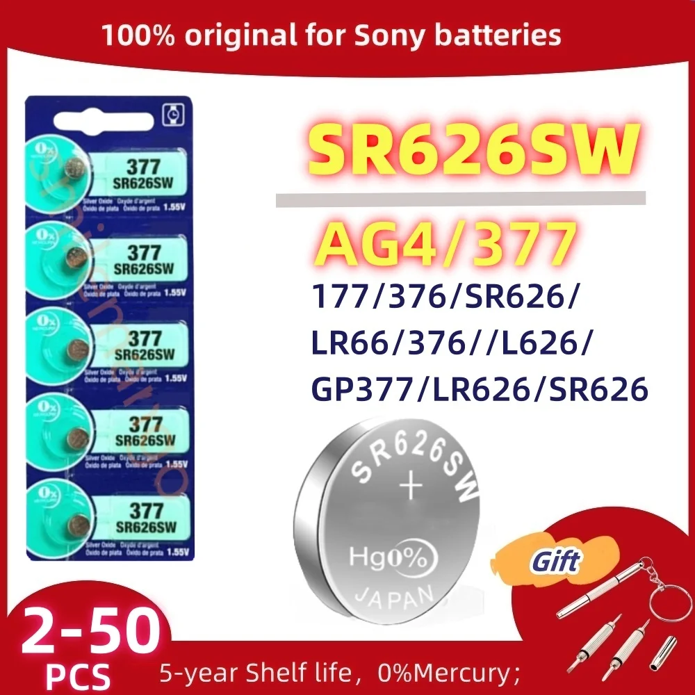 Оригинальные кнопочные батареи для SONY AG4 377 SR626SW SR626 177 376 626A LR66 LR626, щелочная батарея для часов, игрушек, часов