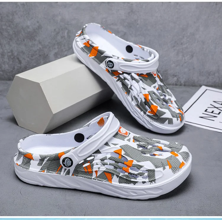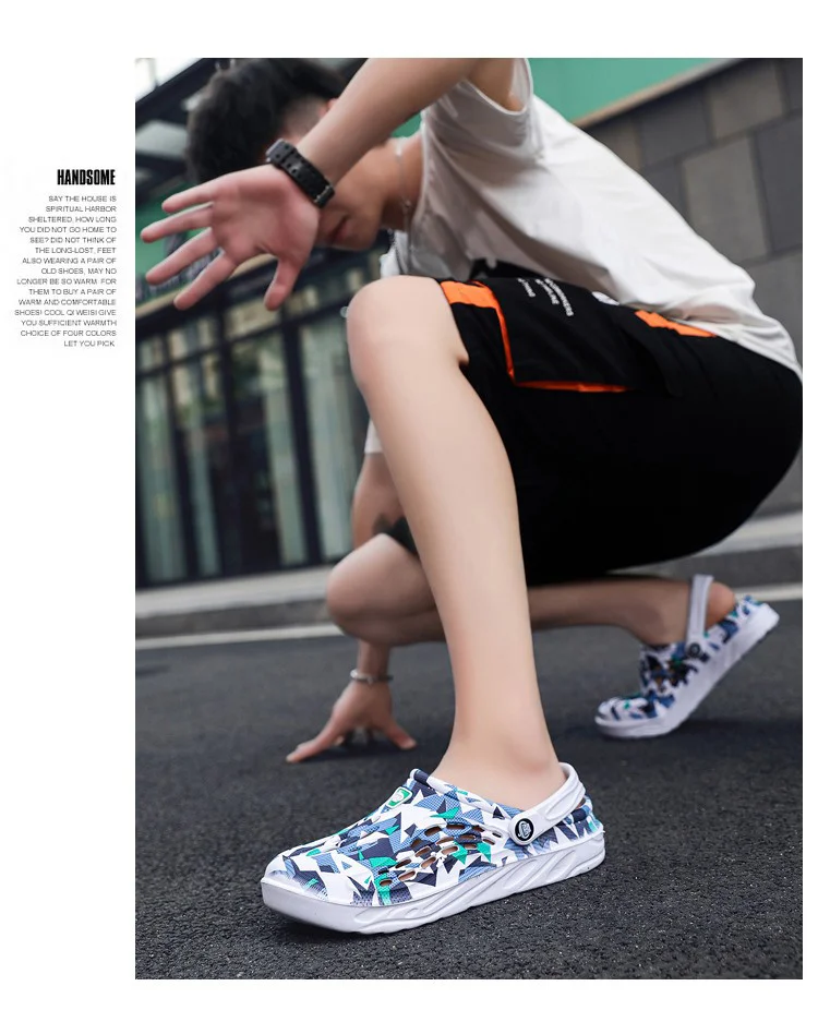 Оригинальные мужские сандалии, искусственная ЭВА, мягкая подошва, обувь с отверстиями Plus 49, уличные пляжные тапочки на плоской подошве, садовая обувь