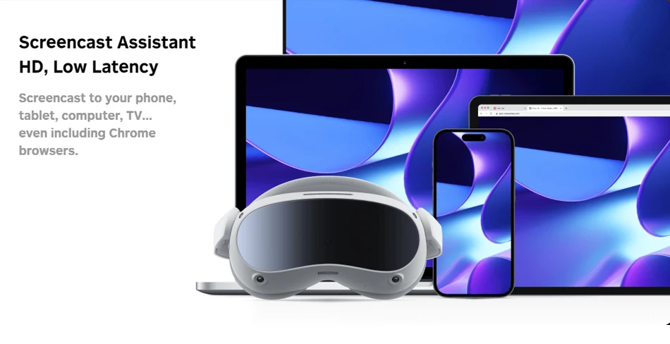PICO 4 оснащен двумя 2,56-дюймовыми Fast-LCD экранами, с общим разрешением 4320 × 2160 и частотой обновления до 90 Гц;