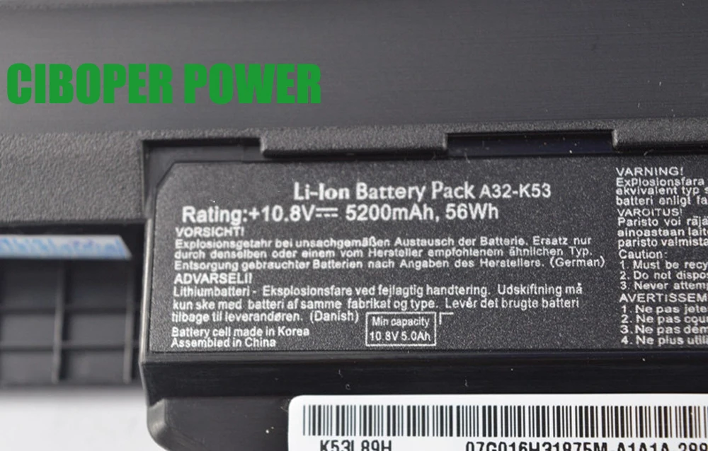 Оригинальный аккумулятор 10,8 В, 5200 мА · ч A32-K53 56Wh для K43 K43E K43J K43S K43SV K53E K53F K53SV A43 A53SV A4