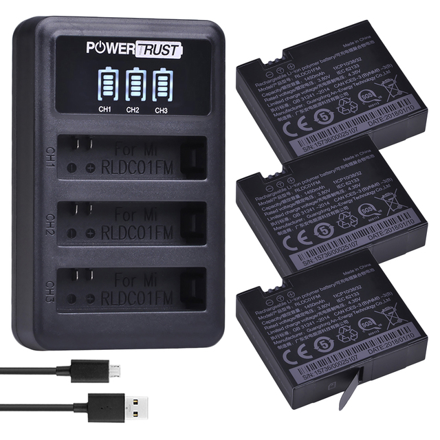 ОригиналАккумулятор Mijia + светодиодное зарядное устройство с 3 слотами для Xiaomi Mijia Mini, экшн-камеры Xiaomi Mijia RLDCD1FM