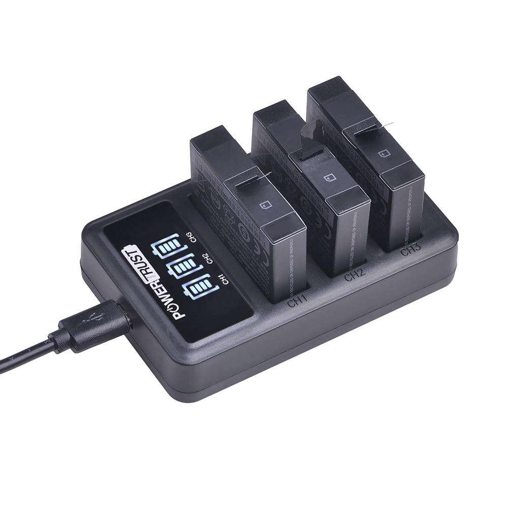 ● Зарядное устройство с 3 слотами для светодиодов 5V-2A может заряжать две или три батареи одновременно и независимо от любого источника питания Micro, вы можете легко узнать состояние зарядки аккумулятора через светодиодный дисплей.