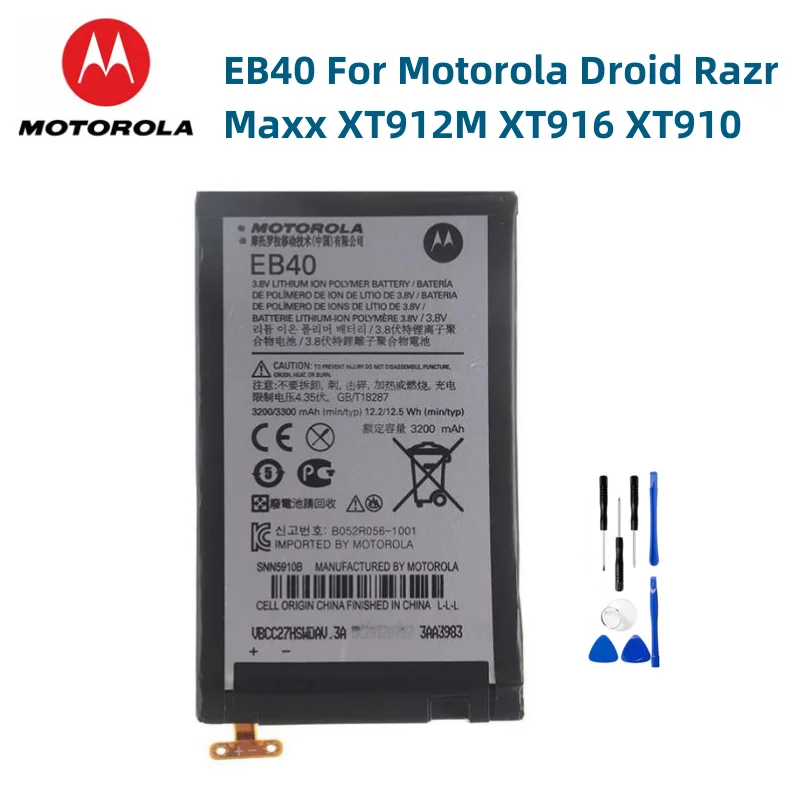 Оригинальный аккумулятор Motorola 100% EB40 3200 мАч для Motorola Moto Droid Razr Maxx XT912M XT916 XT910 EB40, батарея с бесплатными инструментами