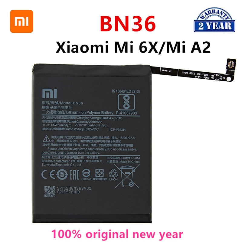 Xiao mi 100% оригинальныйBN363010 мАч батарея для Xiaomi Mi 6X Mi6X Mi A2 MiA2 BN36 высокое качество сменные батареи для телефона + Инструменты