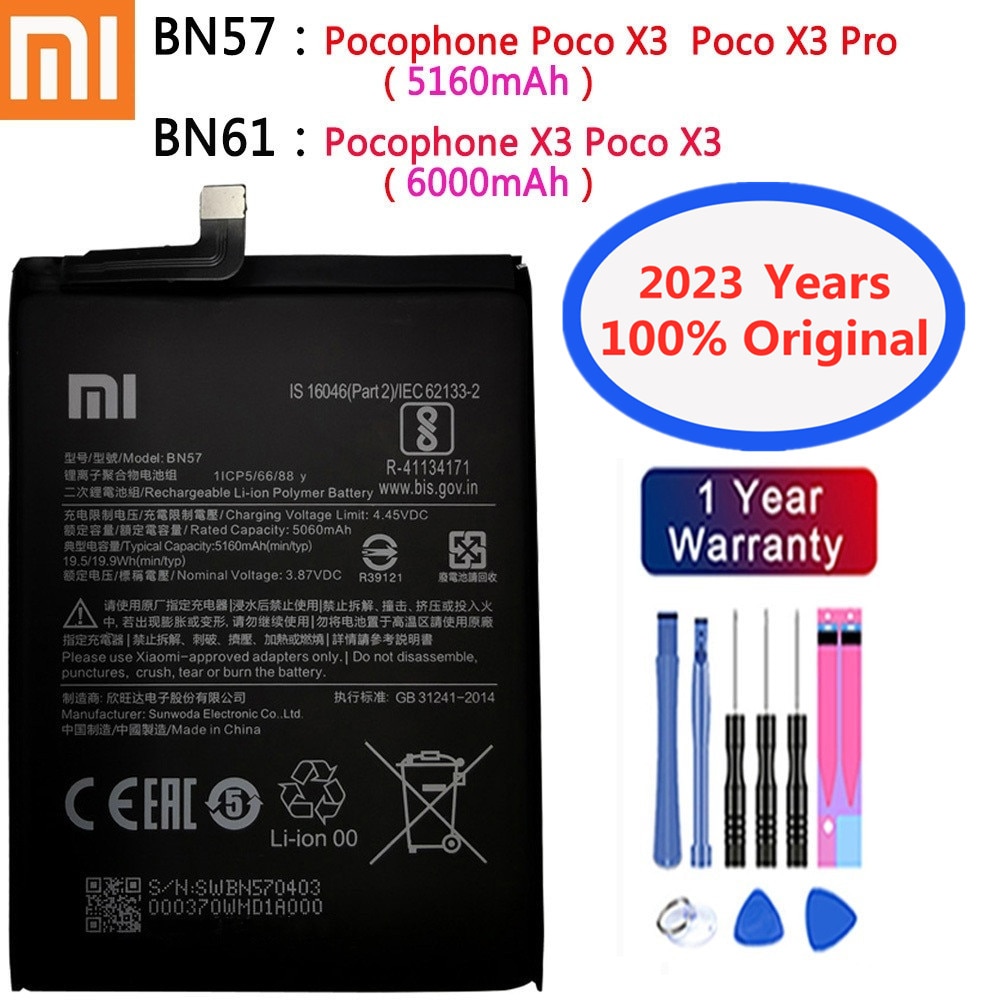 Оригинальный аккумулятор Xiao mi BN57 BN61 для телефона Xiaomi Pocophone X3 POCO X3 / X3 Pro 2023 года, высококачественные батареи и инструменты