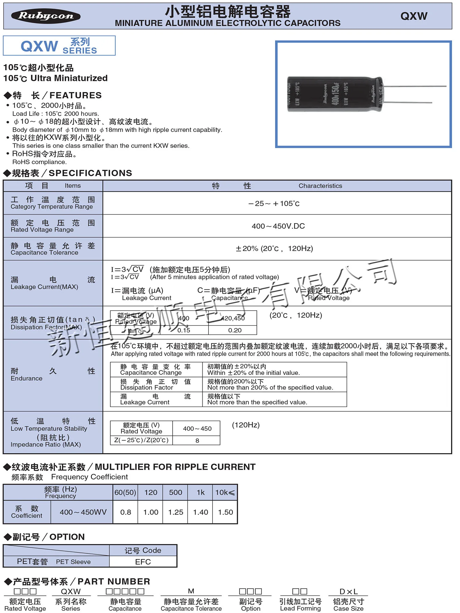 Оригинальный алюминиевый электролитический конденсатор RUBYCON, долгий срок службы, низкое сопротивление 450V68UF QXW 12.5X40 450QXW68MEFC12.5X40, 5 шт.