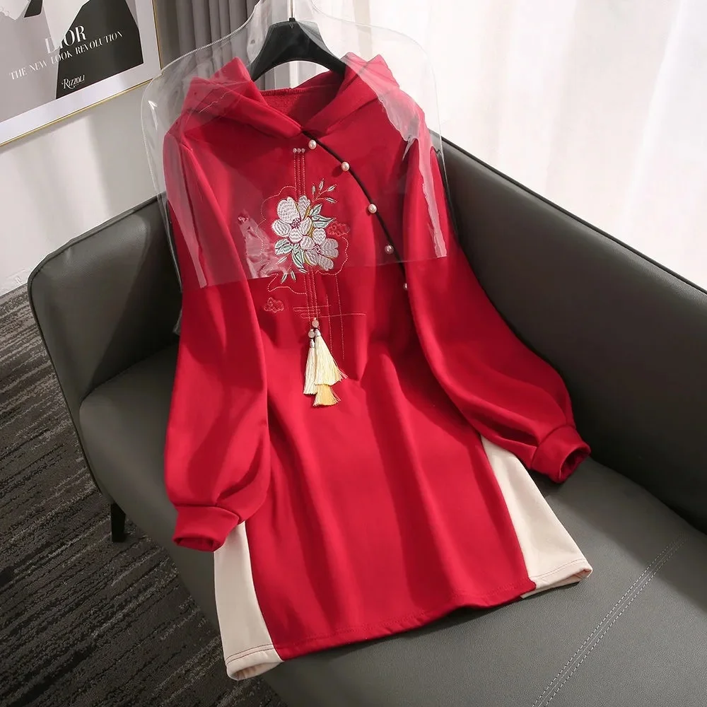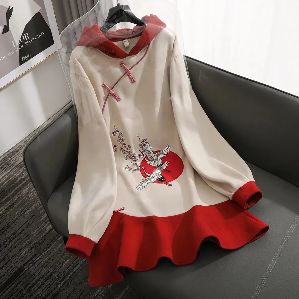 Оригинальный дизайн 2024 Новый китайский стиль Чонсам улучшенная версия платье плюс бархатное утолщенное Новогоднее платье Свитшот Hanfu