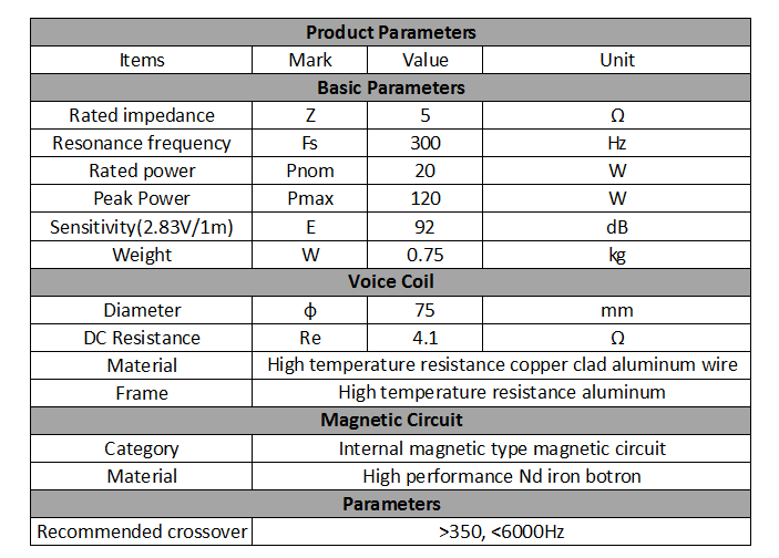 Материал звуковой катушки: высокотемпературный алюминиевый провод, Плакированный медью