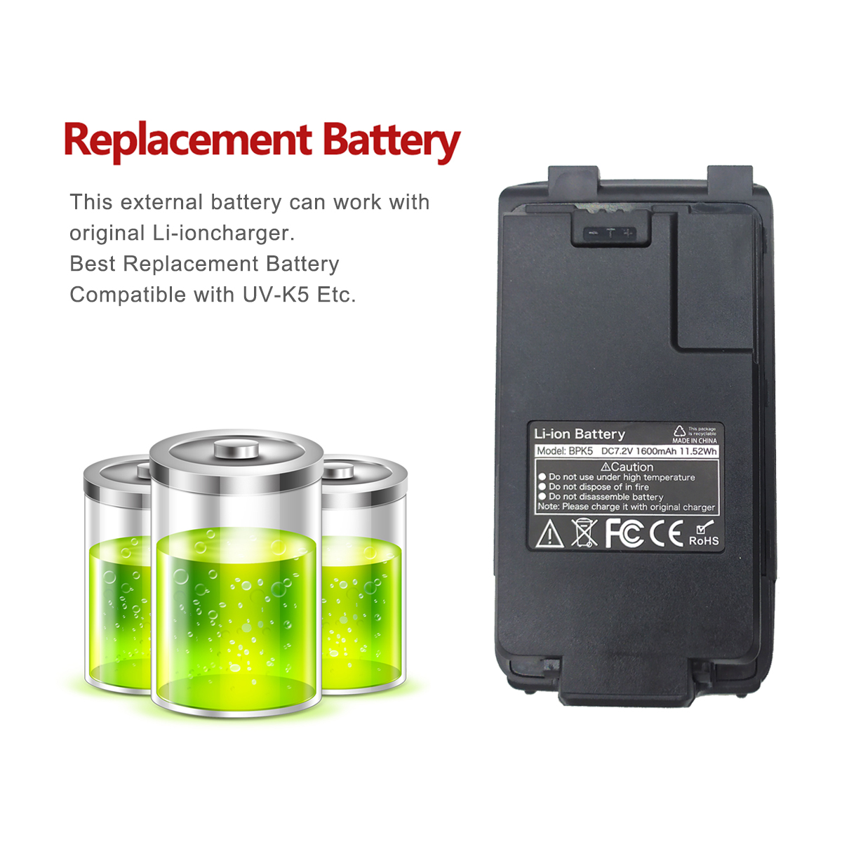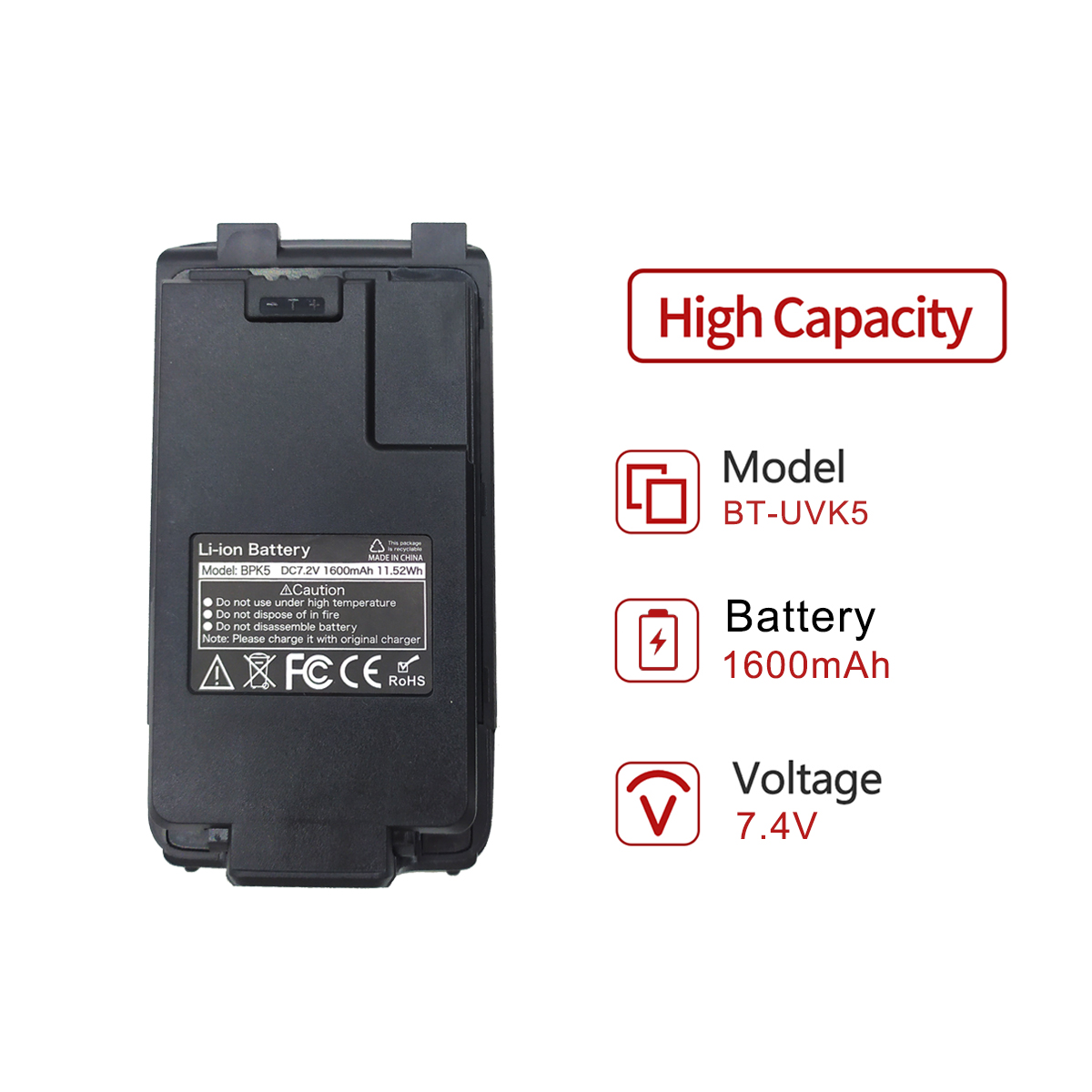 Оригинальный литий-ионный аккумулятор 7,4 В 1600 мАч для ANYSECU Quansheng UV-K5 Портативные двухсторонние радиобатареи