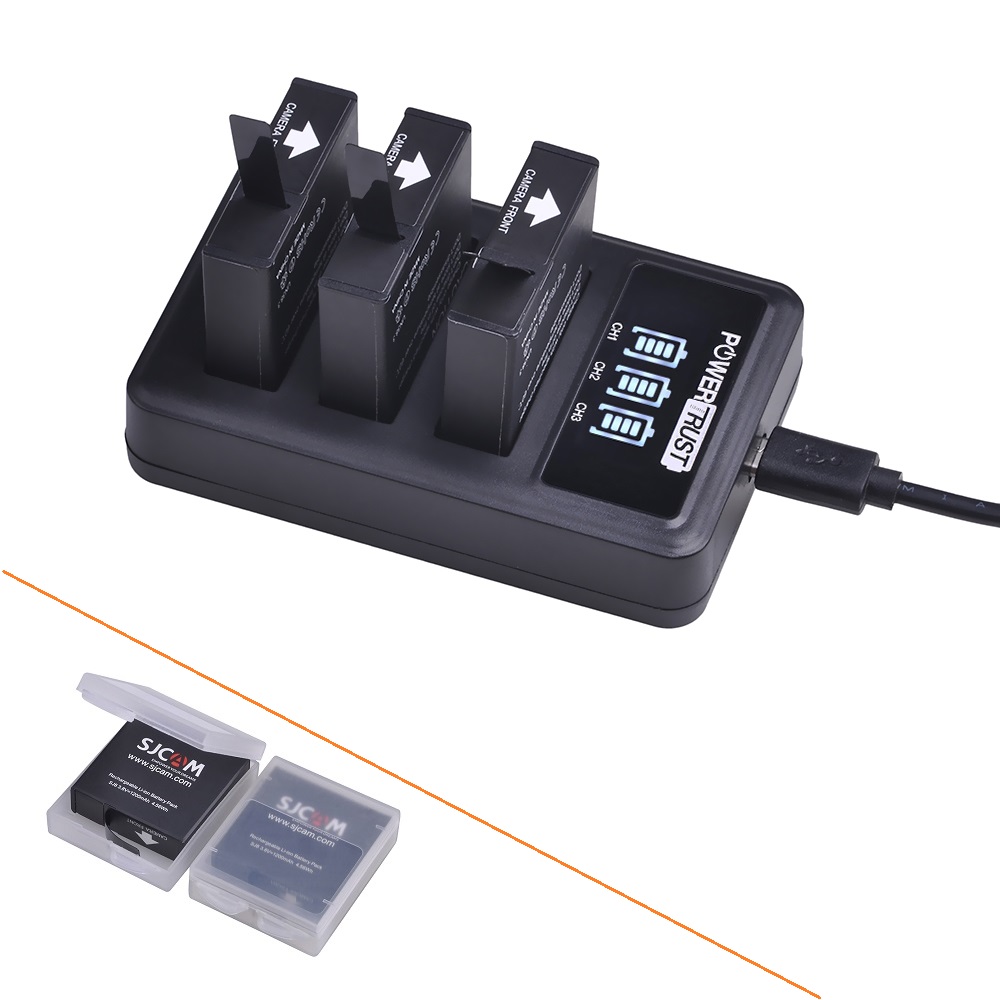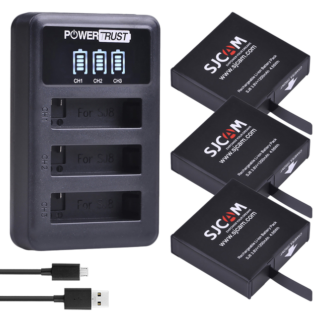 Оригинальный SJCAMЛитий-ионная аккумуляторная батарея SJ8 1200 мАч и интеллектуальное зарядное устройство на 3 слота для экшн-камер SJCAM SJ8 Pro / SJ8 Plus / SJ8 Air