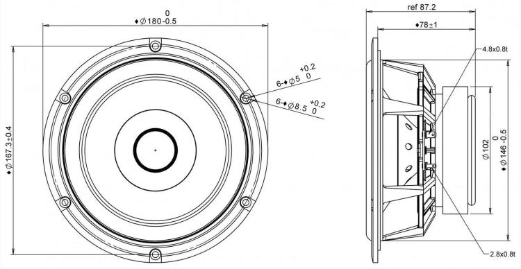 2, вот техническое описание динамика Peerless P830875 с серым корпусом, но размер такой же, как у P830883, как следующие