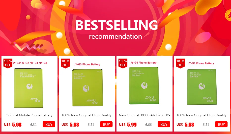 Оригинальный мобильный телефон Батарея JY-G4 JY-S3 JY-G2 JY-G3 для JIAYU G4 G4S G4T JYS3 S3 JYG2 G3 Замена литий-полимерная батарея Batteria