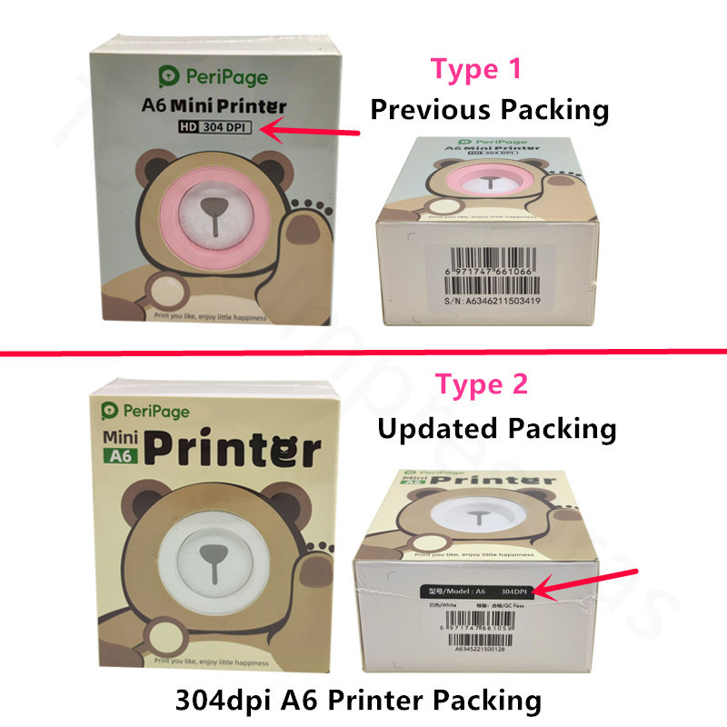 Привет, мой дорогой друг, сейчас доступно 2 вида пакетов с разрешением 304dpi. Оба являются оригинальными пакетами Peripage, пожалуйста, не беспокойтесь. В будущем, мы будем держать только обновленную версию упаковки постепенно.