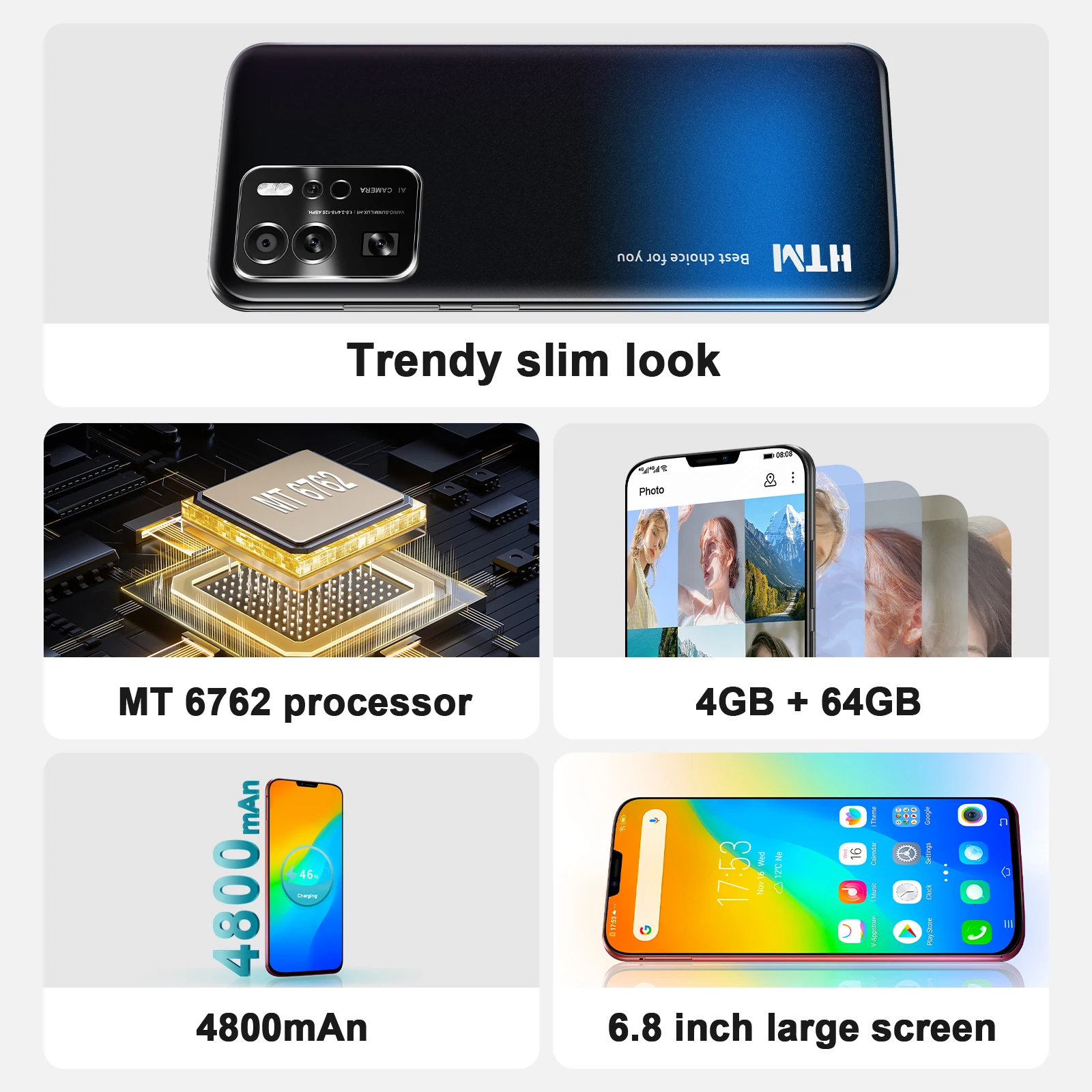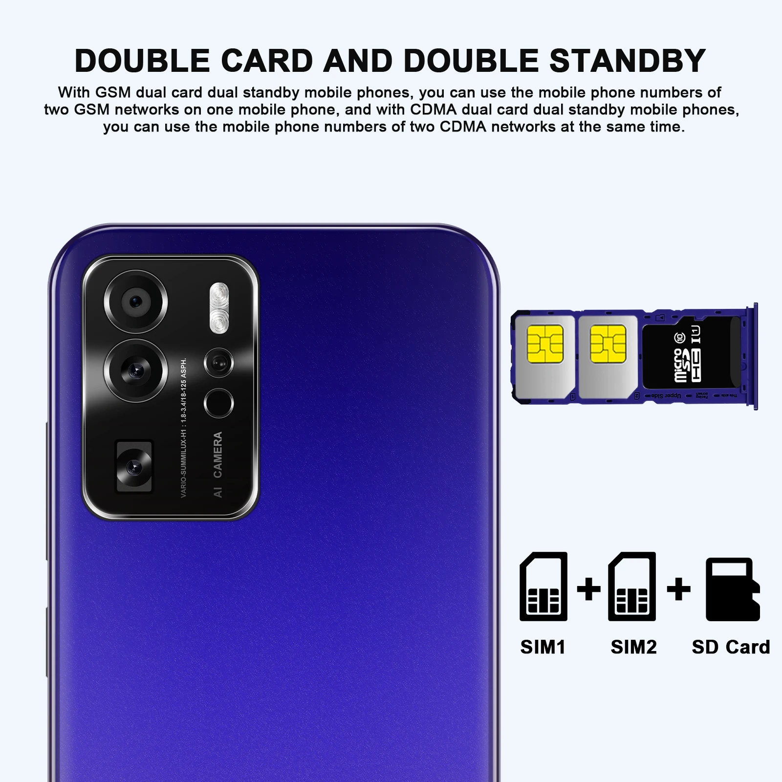 Оригинальный смартфон Android 12, разблокировка по лицу, 64 ГБ, телефон с функцией распознавания лица и двумя Sim-картами, 48 МП